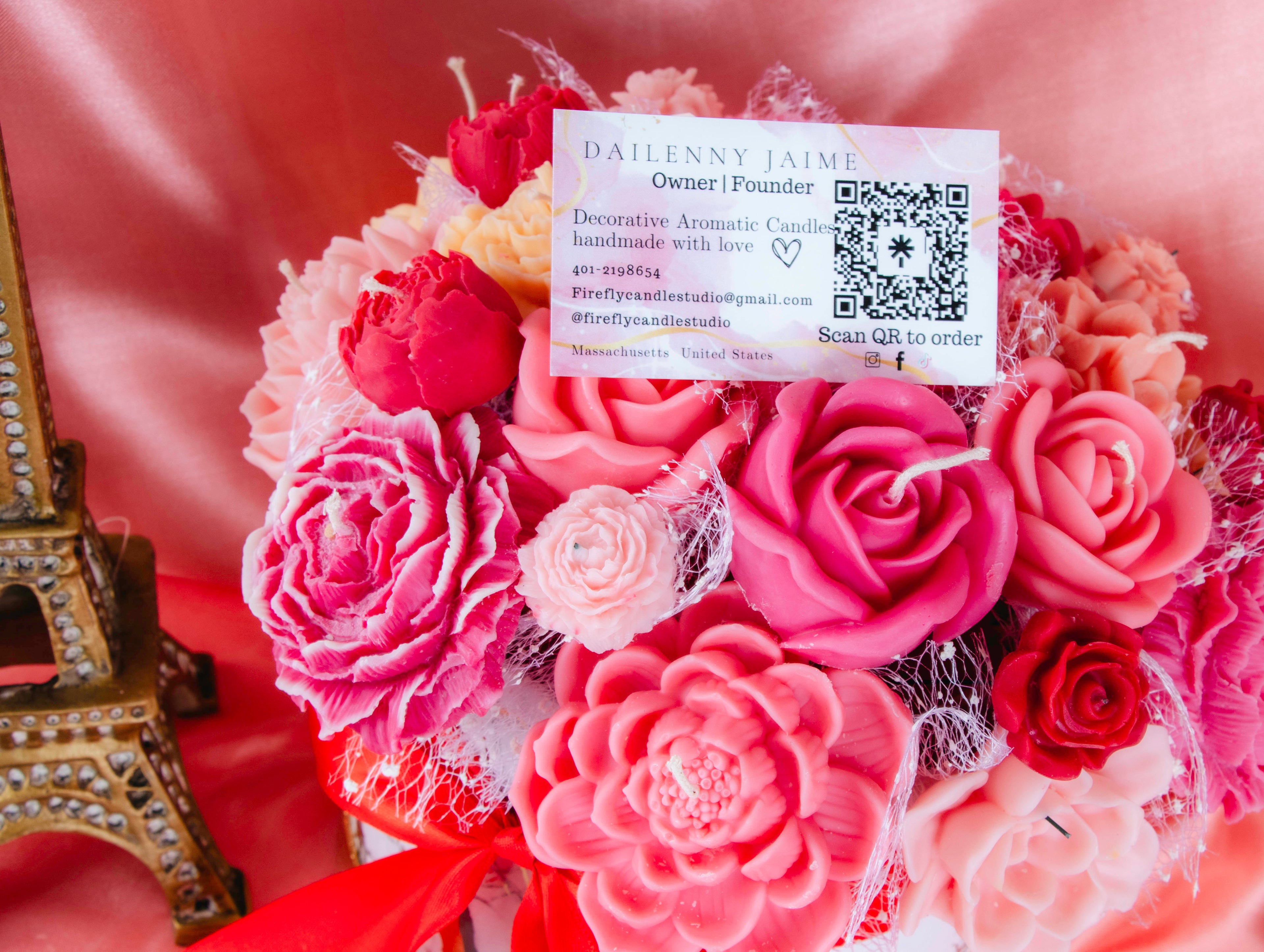 Introducing our luxurious candle flower arrangements, carefully crafted with natural wax and...