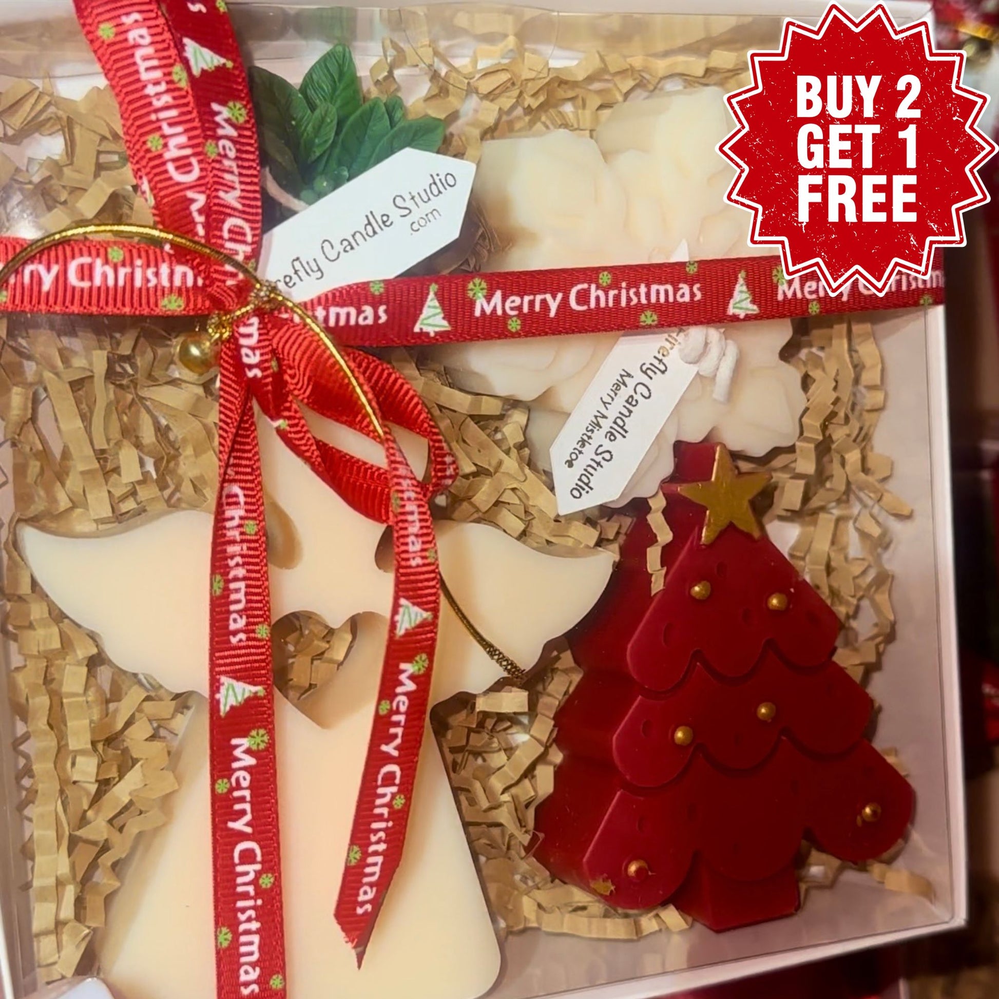 Each candle is handcrafted with natural wax and infused with Christmas Scents .